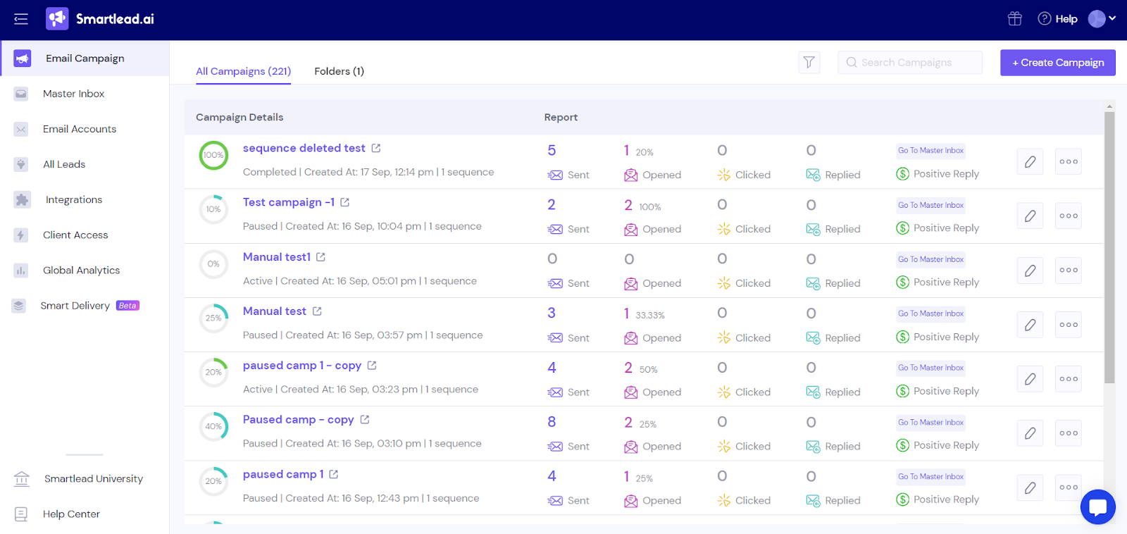 • Master Inbox to manage replies from all campaigns in one place.