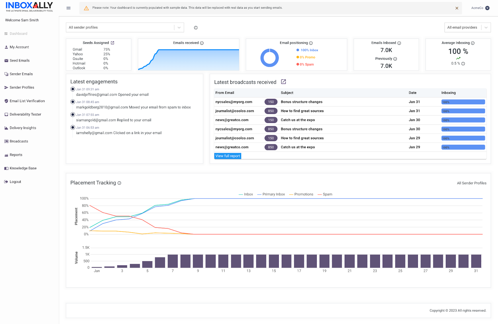 • Inbox placement monitoring and performance dashboard.