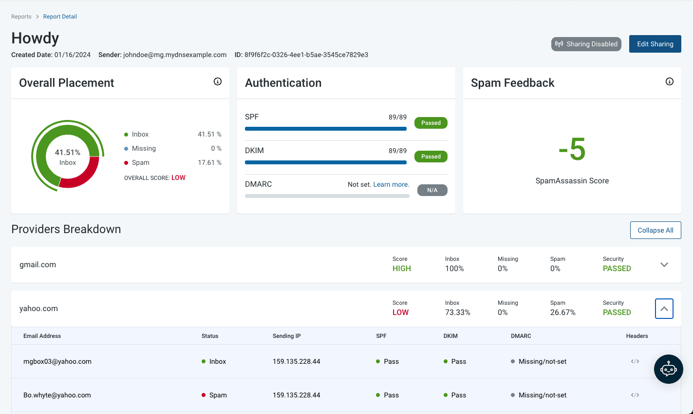 • Gmail-specific deliverability insights.