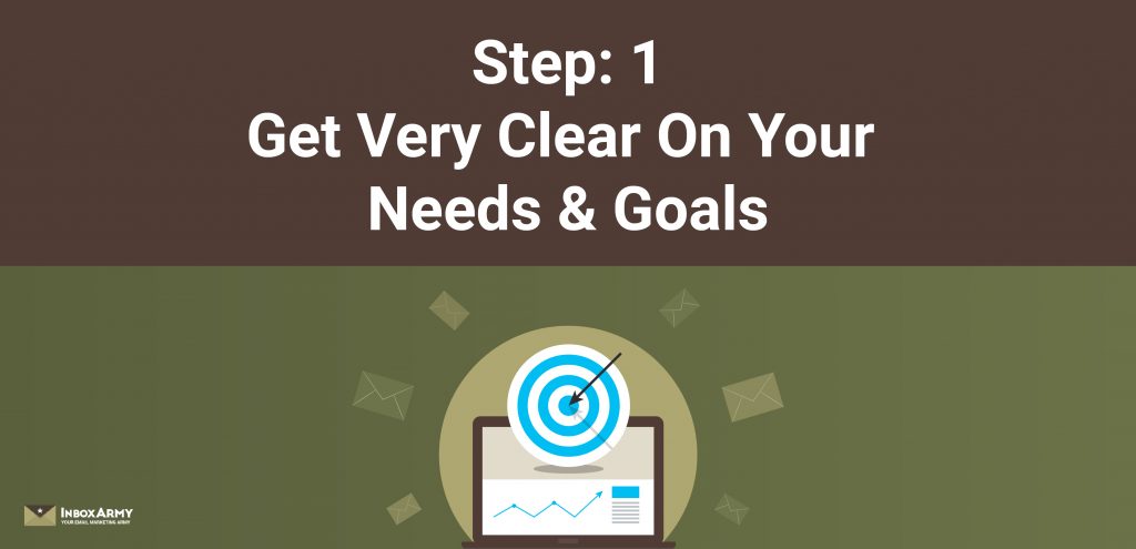 In Step 1, you’ll get crystal clear on your email marketing needs and goals. Clarity on your goals will help you eliminate bad candidates so you don’t waste time. They’ll also serve as the criteria you’ll use to evaluate good candidates, identify who to interview, and make your selection.
