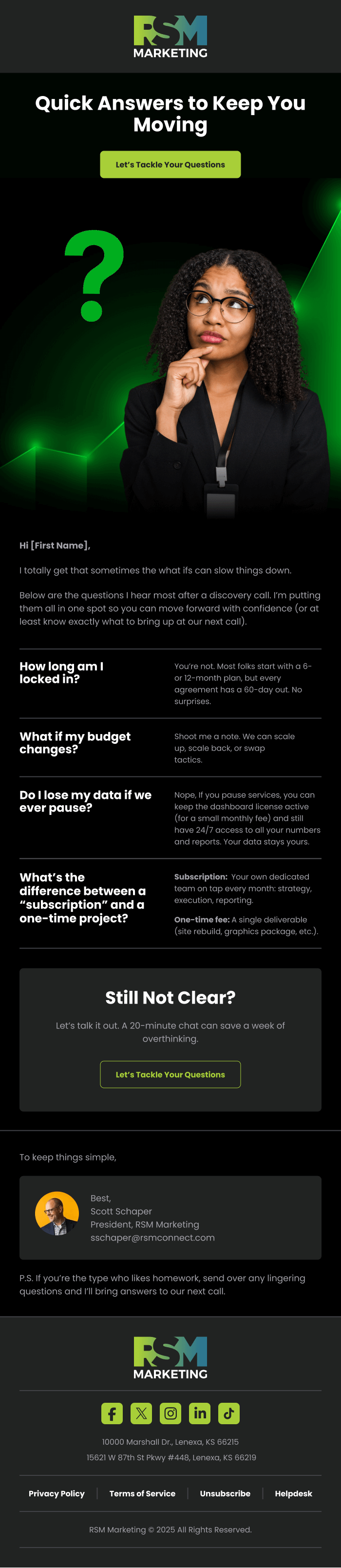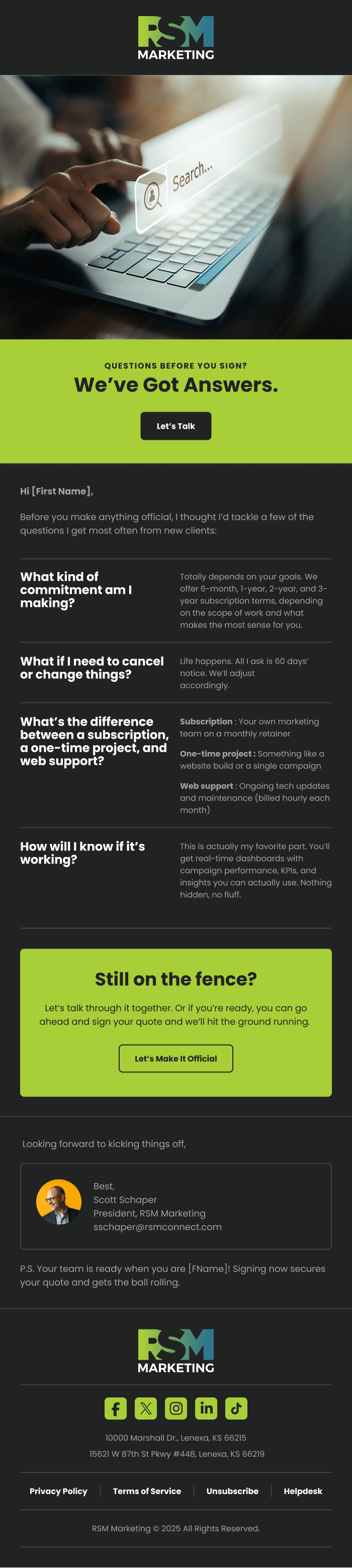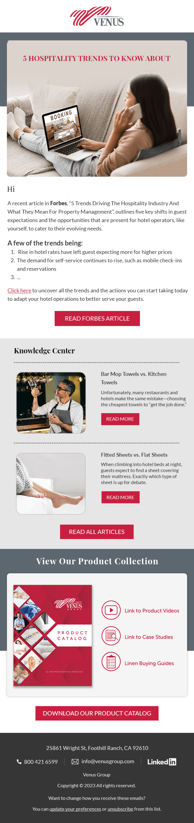 We hired InboxArmy to redesign Salesforce Marketing Cloud emails. The goal was to create a new master template that matched branding using industry best practices. After we signed the SOW, we had a couple discovery calls, submitted our brief and branding document. Once we were on the same page, InboxArmy did design in batches, we had 3 rounds of reviews and once all was finalized IA coded and implemented the templates for us in MC.